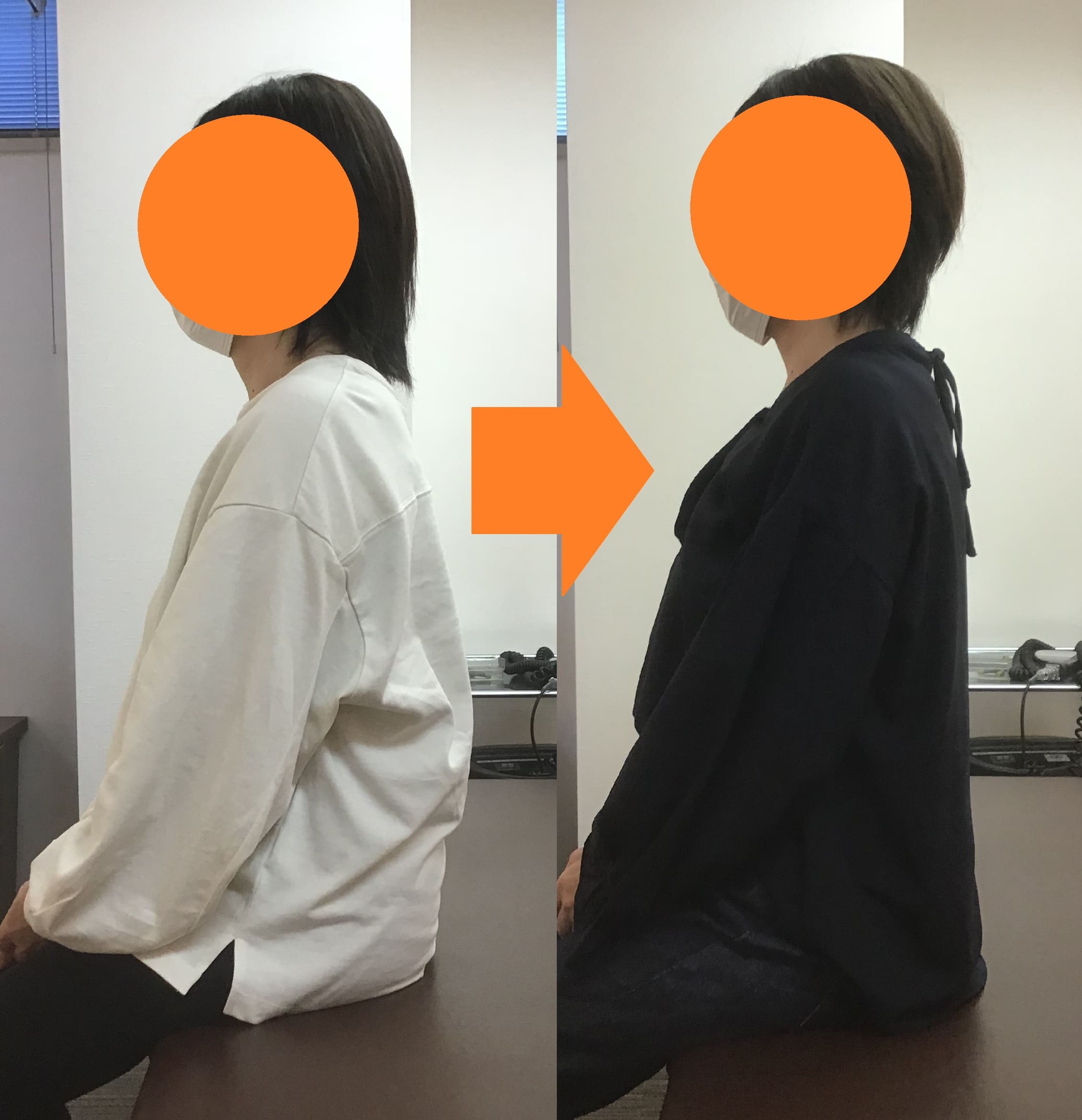 姿勢分析を行ったところ、背筋はそれなりに伸びているものの、肩が内側に巻き込む状態である「巻き肩」が見られました。この巻き肩の状態により、首や肩に余分な負荷がかかりやすくなり、肩こりを引き起こしていました。当院では、猫背矯正と合わせて巻き肩の改善を目指しました。
