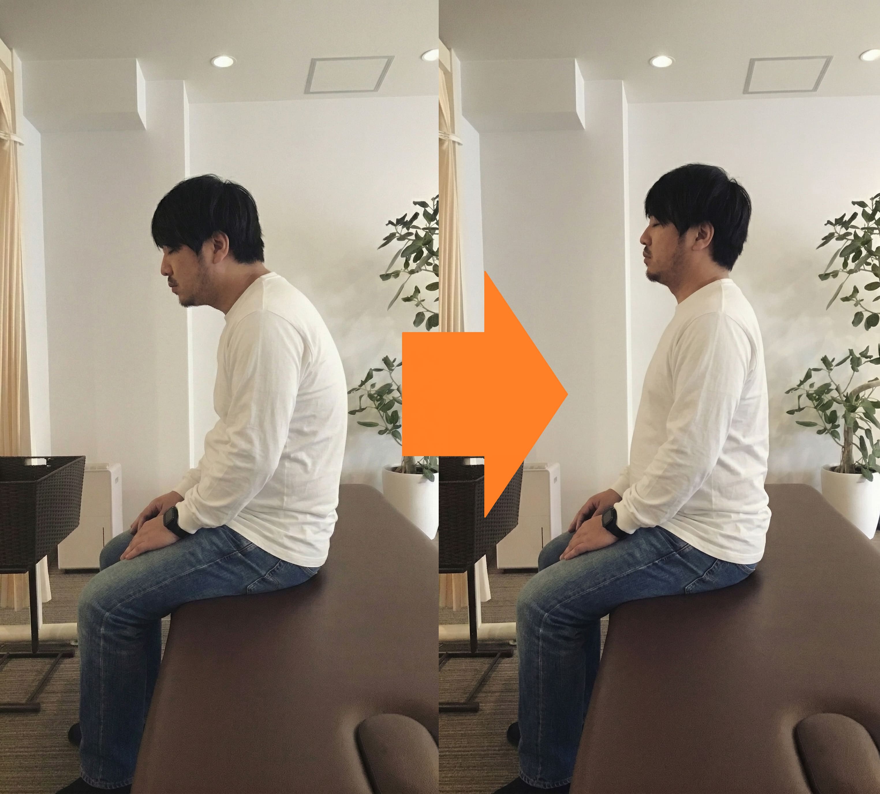整体では、胸椎の伸展や肩甲骨の滑りを引き出すことで、通常は難しい可動域を一時的に回復します。また、過緊張した筋肉を手技で緩め、神経の興奮を和らげることで、その瞬間から姿勢を保ちやすくします。さらに、「正しい姿勢の感覚」をインストールすることで、背筋が伸びた状態が「楽」と感じられるようになります。これが身体の再学習の重要な起点です。そして、自力トレーニングの効果も向上します。他にも理由がいくつかあります。