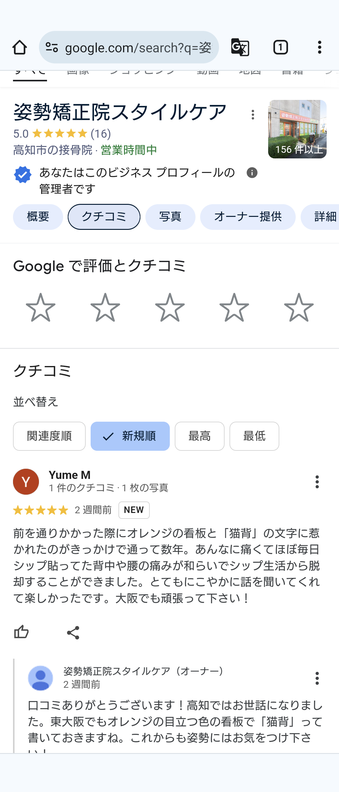 高知では色々な方が口コミを書いて下さったので、それを東大阪に持っていくのです!