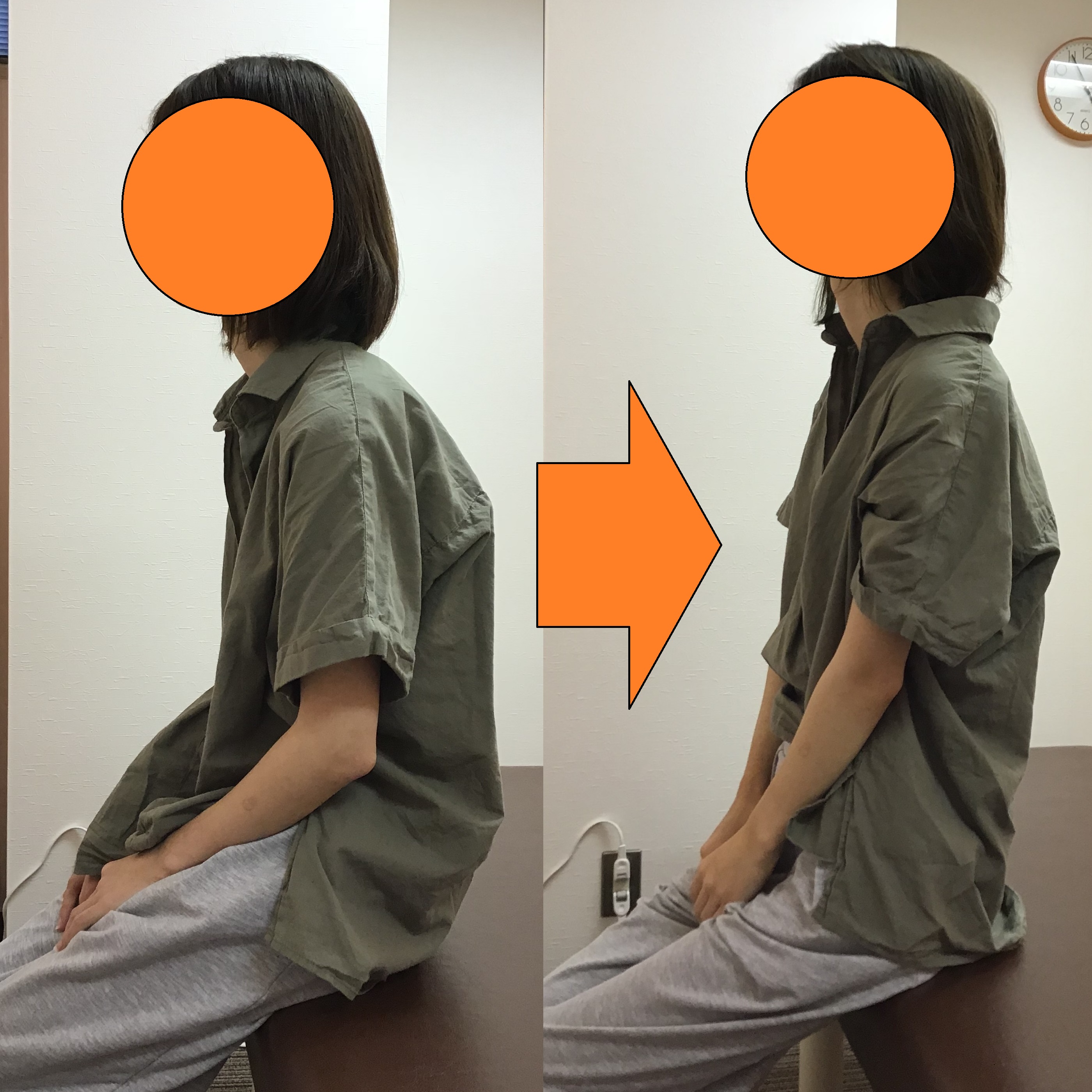 姿勢分析を行ったところ、筋肉が猫背の状態で固まってしまい、通常の背筋を伸ばすことが難しい状況でした。特に産後で身体が回復途中であることも考慮しながら、安全で無理のない範囲での猫背矯正を施しました。