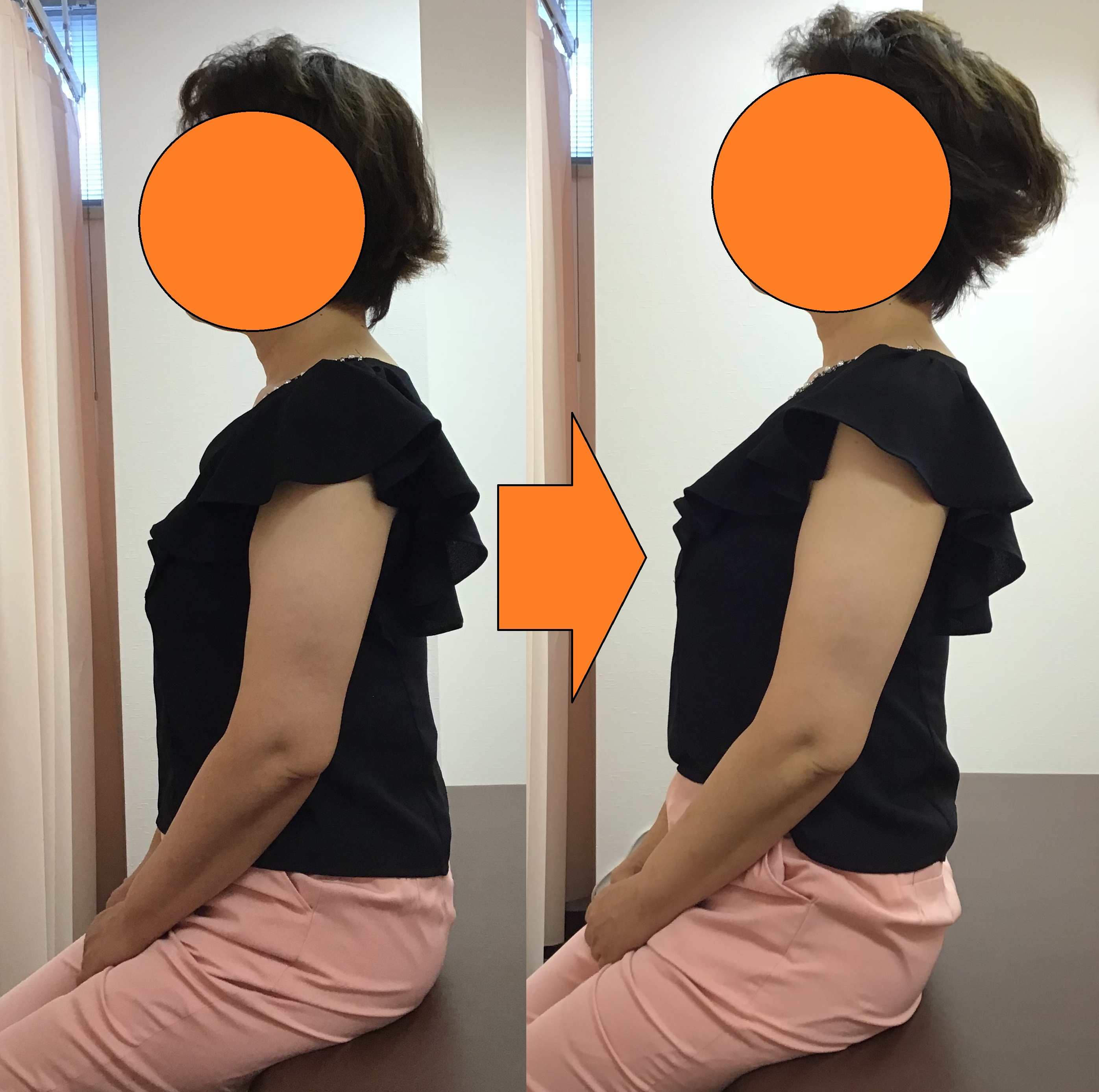 50代女性の患者様の症例を紹介いたします。この方は仕事でパソコンを使用する時間が長く、デスクワークが主であったため、頭が前に出てしまう姿勢になりがちでした。
