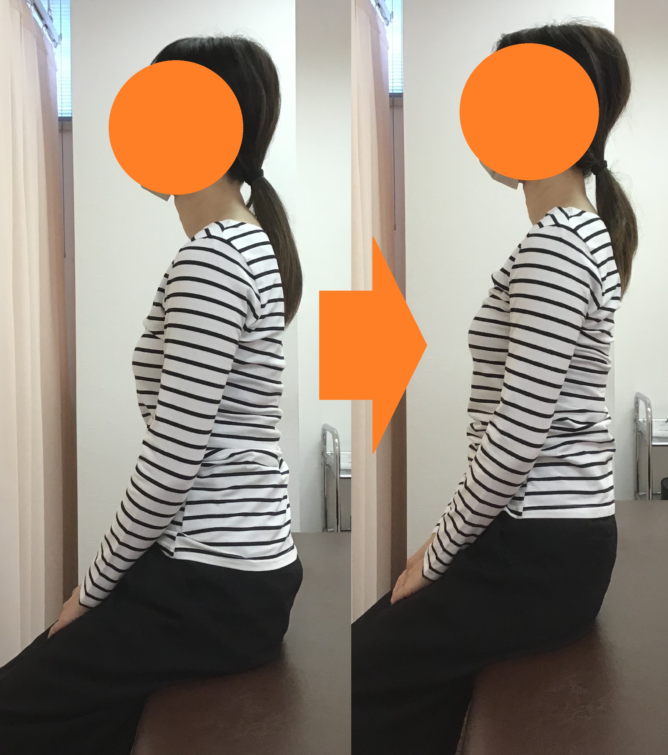 初回の産後矯正後から骨盤の歪みが改善され、腰痛が軽減する効果が見え始めました。しかし、まだ骨盤の不安定さが残るため、週に一度の頻度で産後矯正を続けました。その後産後矯正を続けた結果、3ヶ月後には骨盤が正しい位置で固定され、腰痛も改善。前傾姿勢も改善され、ウエスト周りが引き締まったことを当人にも実感して頂き、産後矯正を卒業となりました。