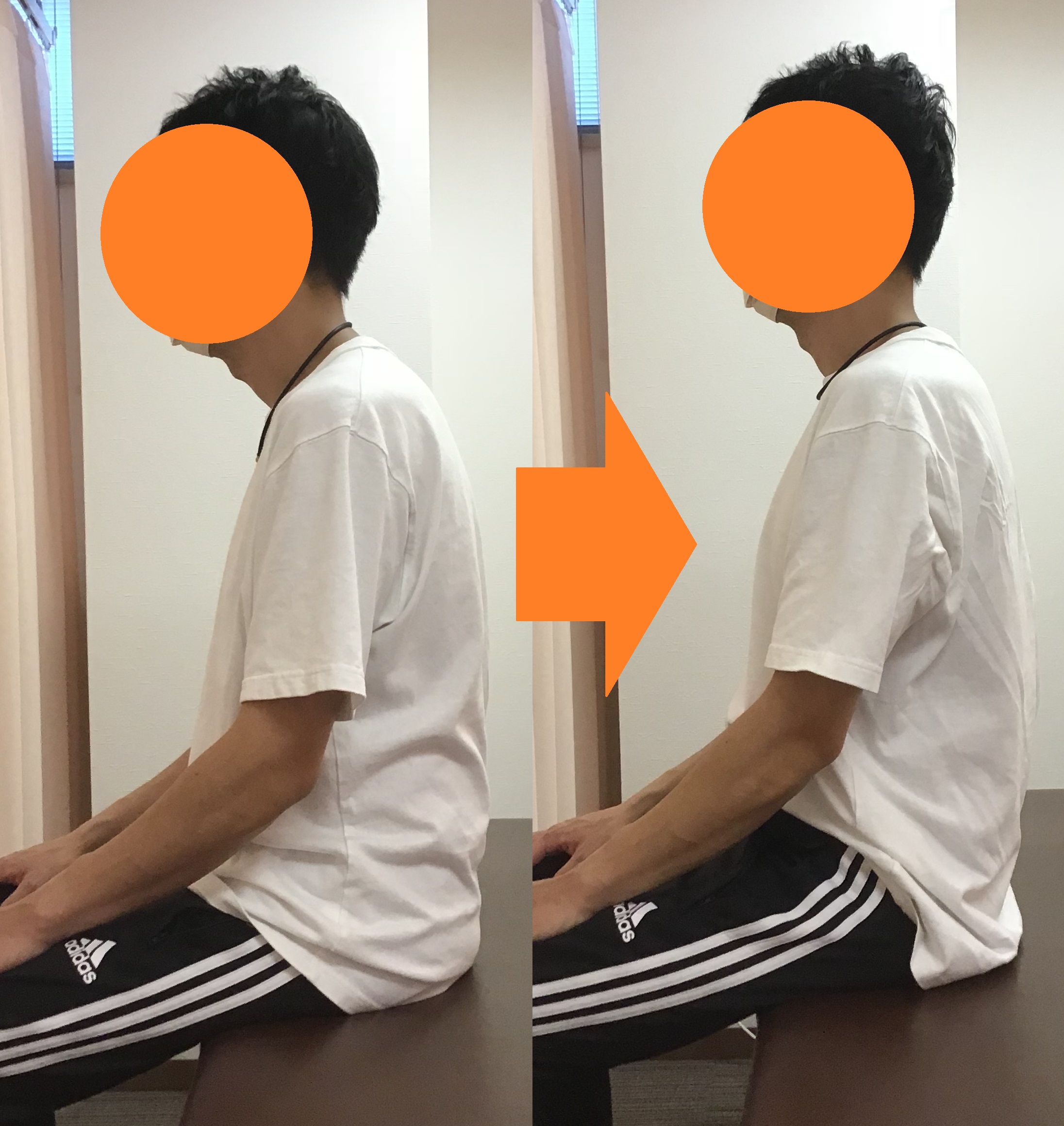 初回の猫背矯正後には頭の位置が変わり、首の痛みも緩和し始めました。継続した矯正が必要だったため、週1回の頻度で猫背矯正を続け更なる姿勢の改善を目指します。その後、姿勢の改善が続き、猫背矯正開始から3ヶ月が経過した頃には首関節の柔軟性が向上し、首への負荷が大幅に軽減されたことが確認されました。患者様も日常生活で首に痛みを感じなくなったため、猫背矯正を卒業としました。