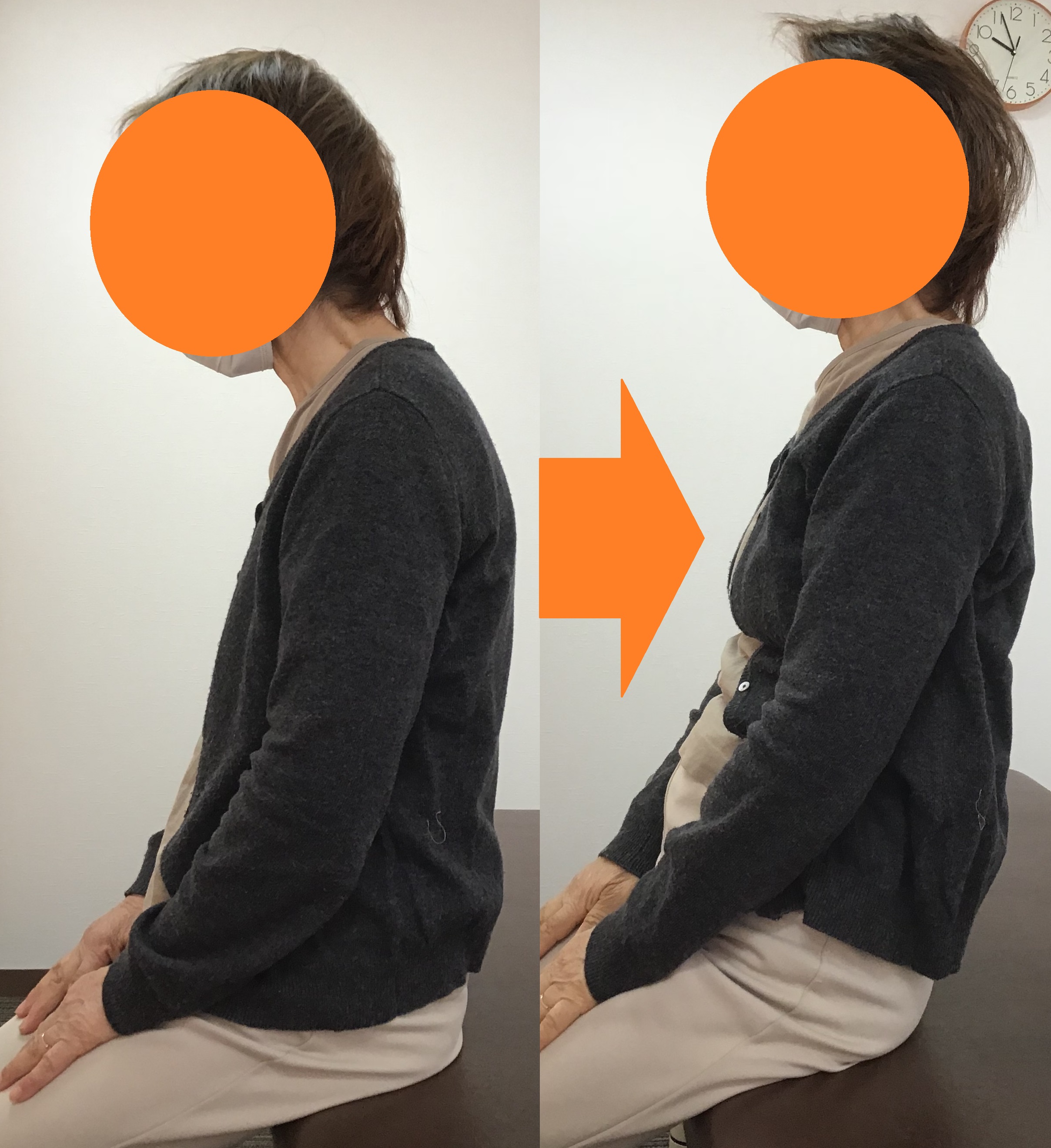 70代の女性患者様の症例を紹介いたします。この方は若い頃から酷い猫背に悩まされ、慢性的な肩こりにも苦しんでおられました。長年改善は難しいと諦めていましたが、当院の猫背矯正に希望を抱き、ご来院されました。