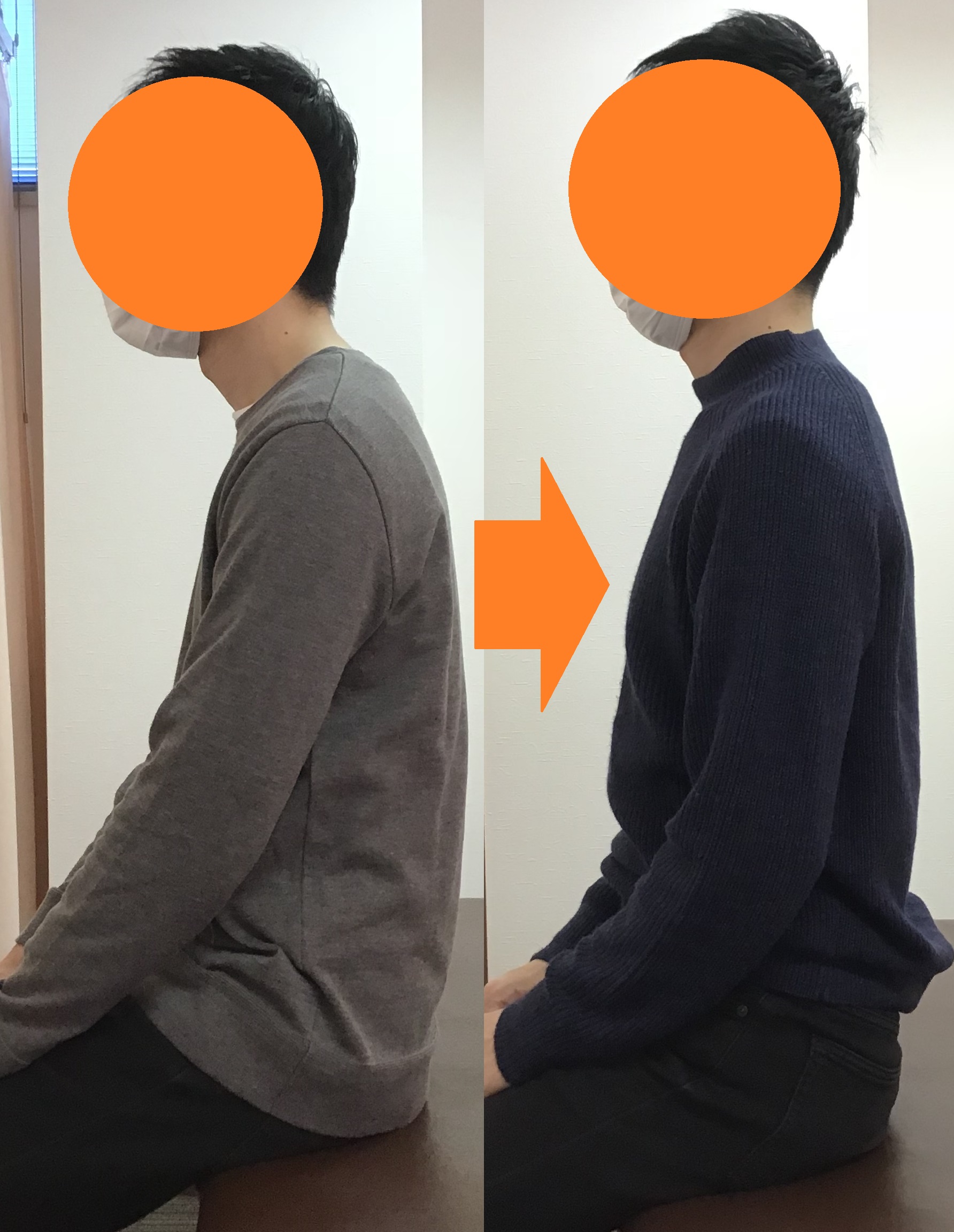 30代の男性患者様の症例をご紹介いたします。この方は、以前より自身の姿勢の悪さを自覚しており、それに伴う頻繁な肩こりに悩まされていました。しかし、最近では特に仕事中や日常生活において、肩こりに加えて首の痛みや頭痛を訴えるようになり、ご自身ではこれらの症状の原因を姿勢の悪さと考えて当院を訪れました。