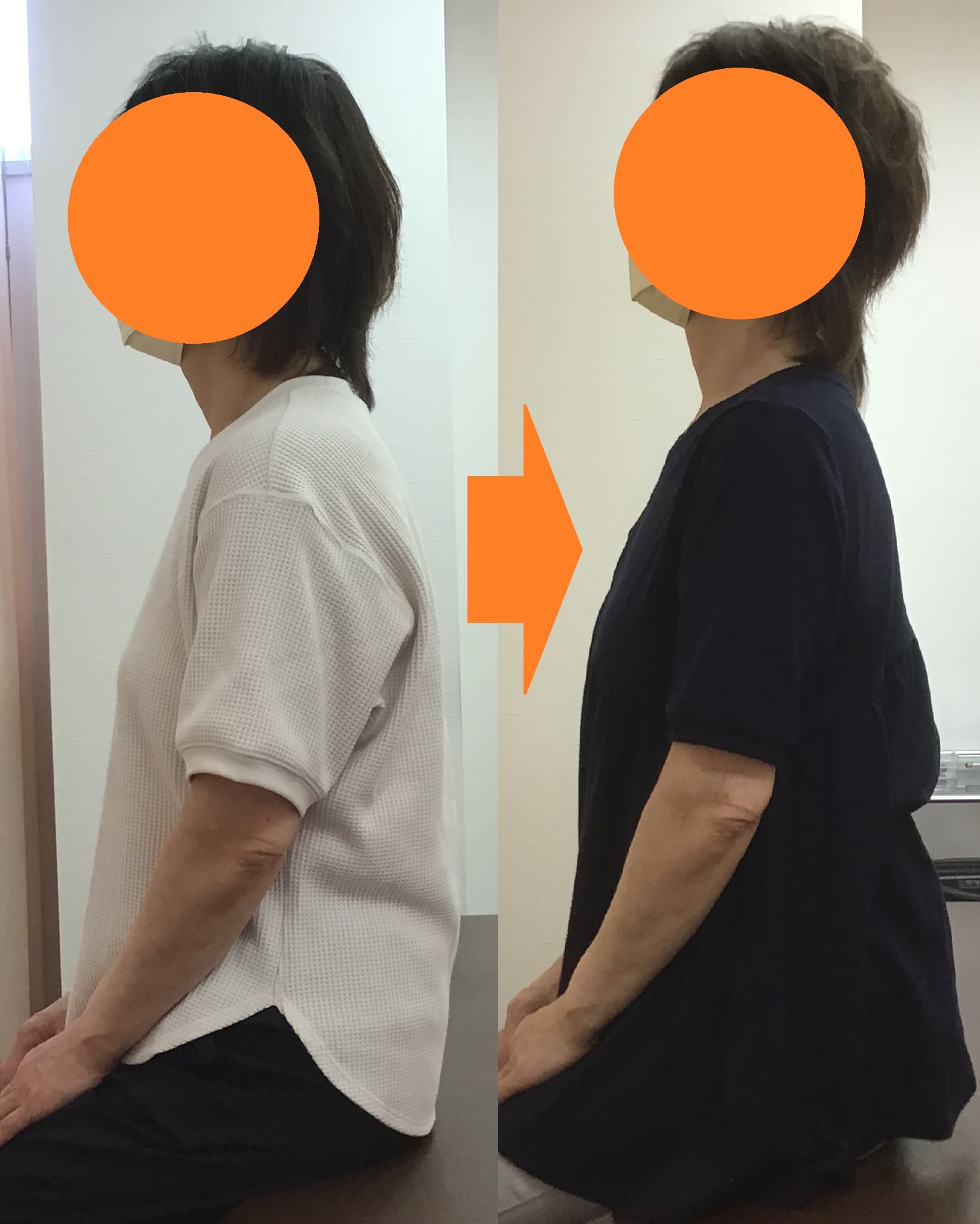 初回の猫背矯正を受けた後に顕著な姿勢の改善が見られました。施術直後には、頭と肩の位置が改善し、より自然で正しい姿勢を取り戻されました。この結果に驚かれたご様子でしたが、それ以上に喜ばれたのはその後の継続的な施術効果です。2週間に1度のペースで通院を続けていただき、施術開始から1ヶ月半が経過する頃には、無意識に良い姿勢を保てるようになったとご報告いただきました。これにより、本人の努力と施術の効果が結びつき、猫背矯正を卒業されました。