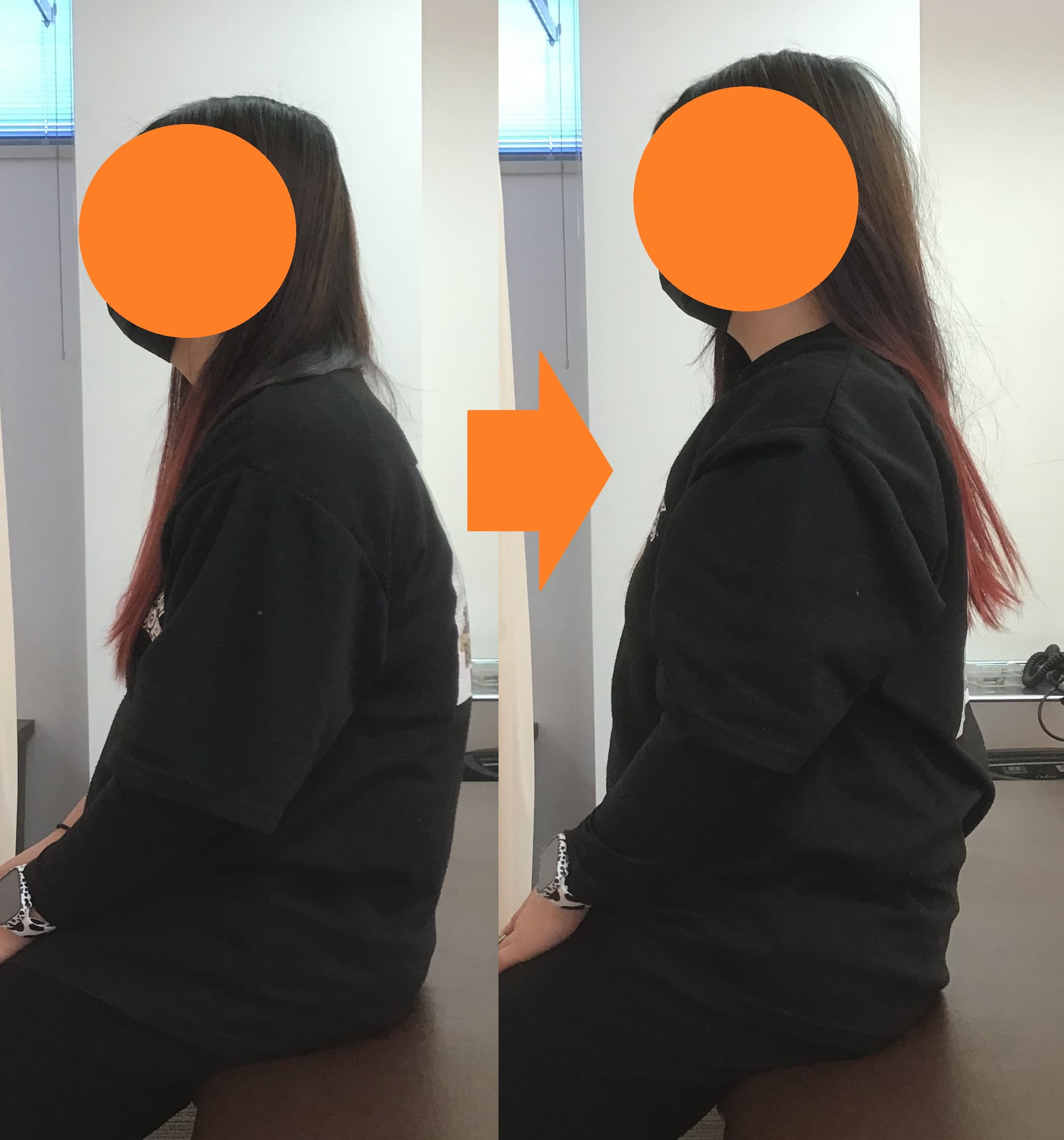 【姿勢のビフォーアフター写真】