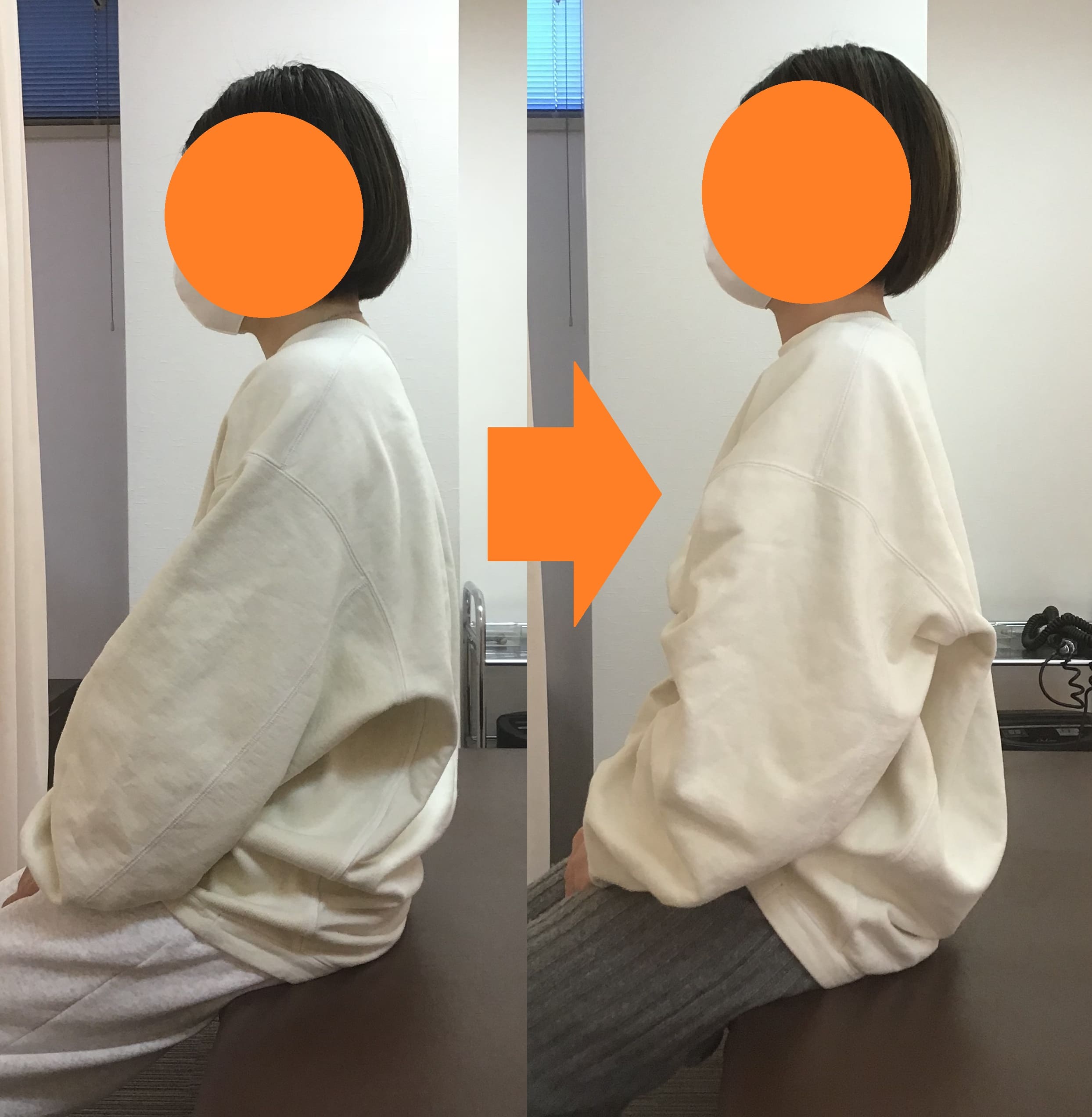 初回の施術後、姿勢が意外に良い方向に変わり、肩こりの症状も緩和されました。さらに週一回の頻度で矯正を続け、2か月後には猫背が改善され、肩こりや腰の張りも大幅に改善しました。本人も体の軽さを実感され、以上の結果から猫背矯正を終了としました。